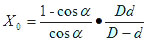 雷蒙磨的最大給料粒度可根據(jù)下圖計(jì)算。設(shè)磨環(huán)內(nèi)直徑為D,磨輥直徑為d,給料粒度為X0,鉗角為α,物料與磨環(huán)、磨輥之間的摩擦系數(shù)為f。